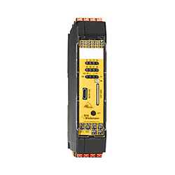 具有擴展功能的安全基本監(jiān)視器,1個ASi主站,1個用于2個ASi網絡的電源,6個數字輸入或3 x 2通道安全輸入(SIL 3,類別4),輸入3可選用于速度監(jiān)視器(高達4kHz),最大可擴展31 x 2通道安全輸入,最大1891 x 2通道安全輸入。配置,2個釋放電路(2個電子安全輸出),可擴展至最大。32個安全輸出,最多991個安全輸出。配置、安全鏈接、通過以太網或Modbus診斷接口進行診斷和配置,IP20具有安全輸入和輸出的安全緊湊型控制器。最多3個軸的安全靜止/速度監(jiān)控器。以太網接口。